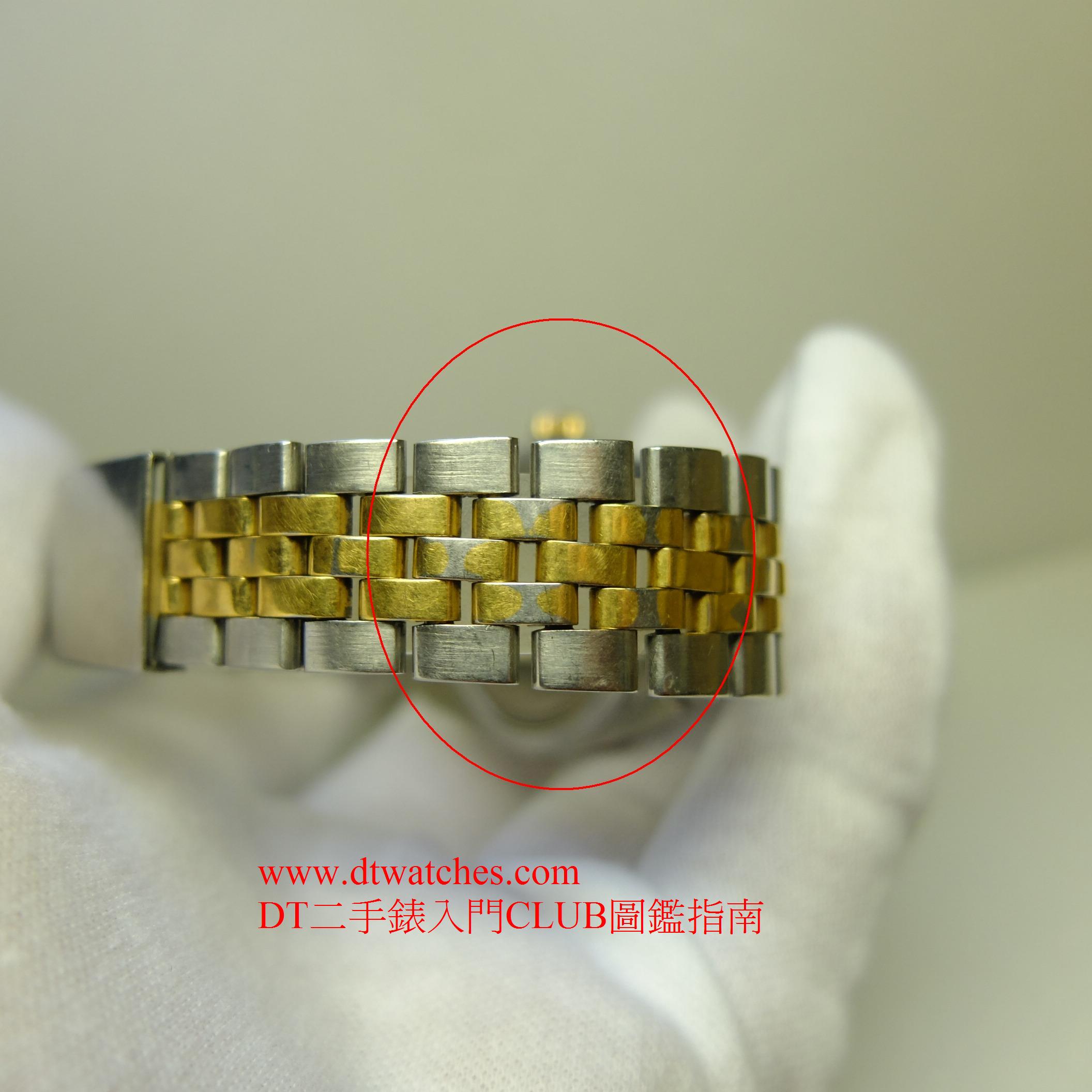 原裝錶帶脫金厲害,可見到底部的鋼色