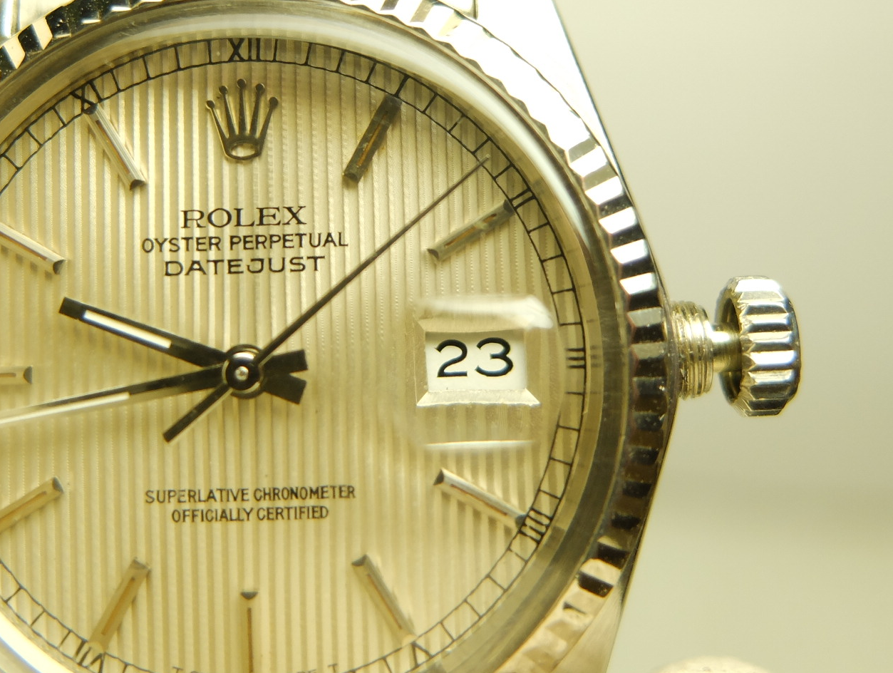 此款錶面,是直線高低"V"紋,所以本地錶友戲稱"電視螢幕面"