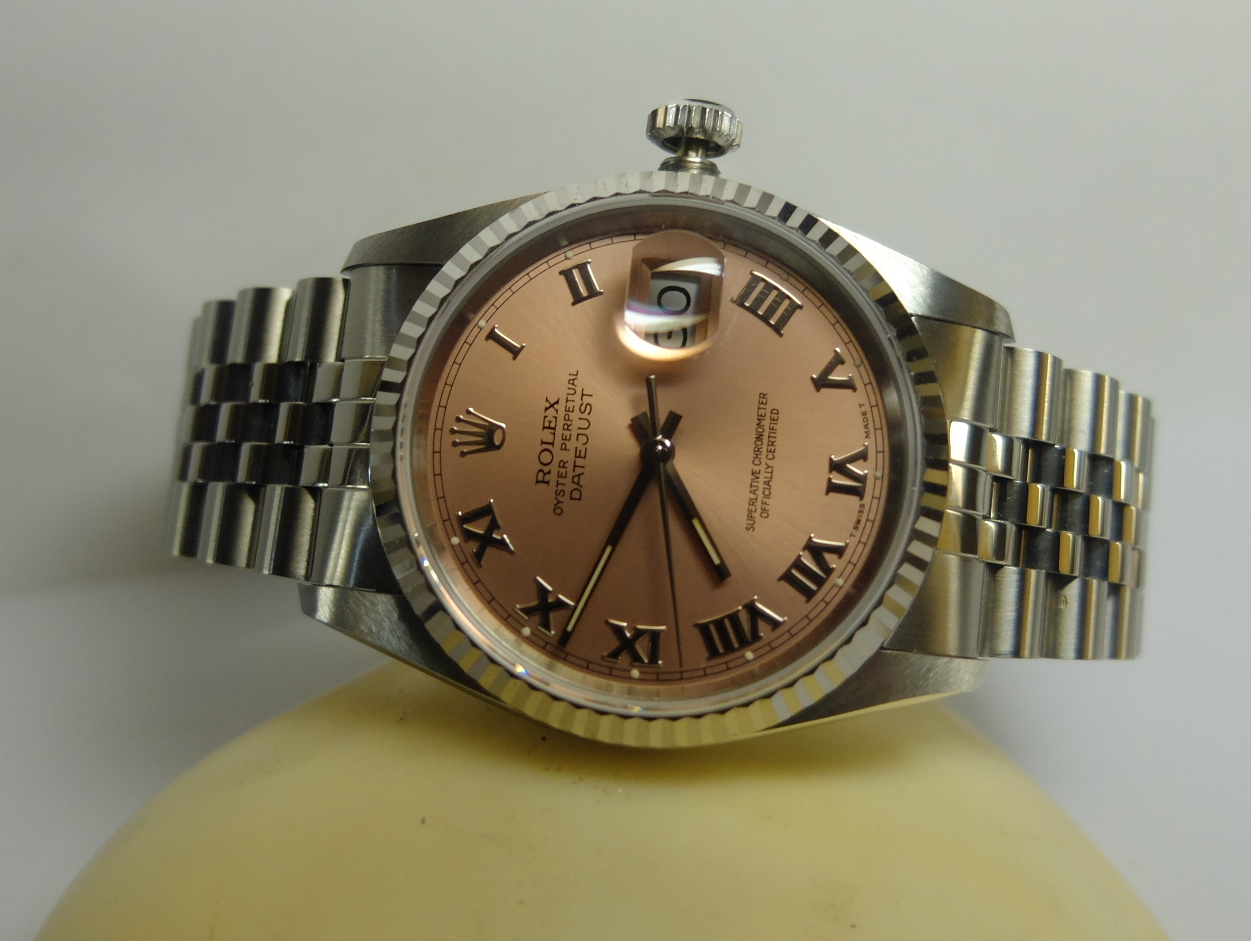 約1991年16234,香檳粉紅面白金大羅馬字銀針,