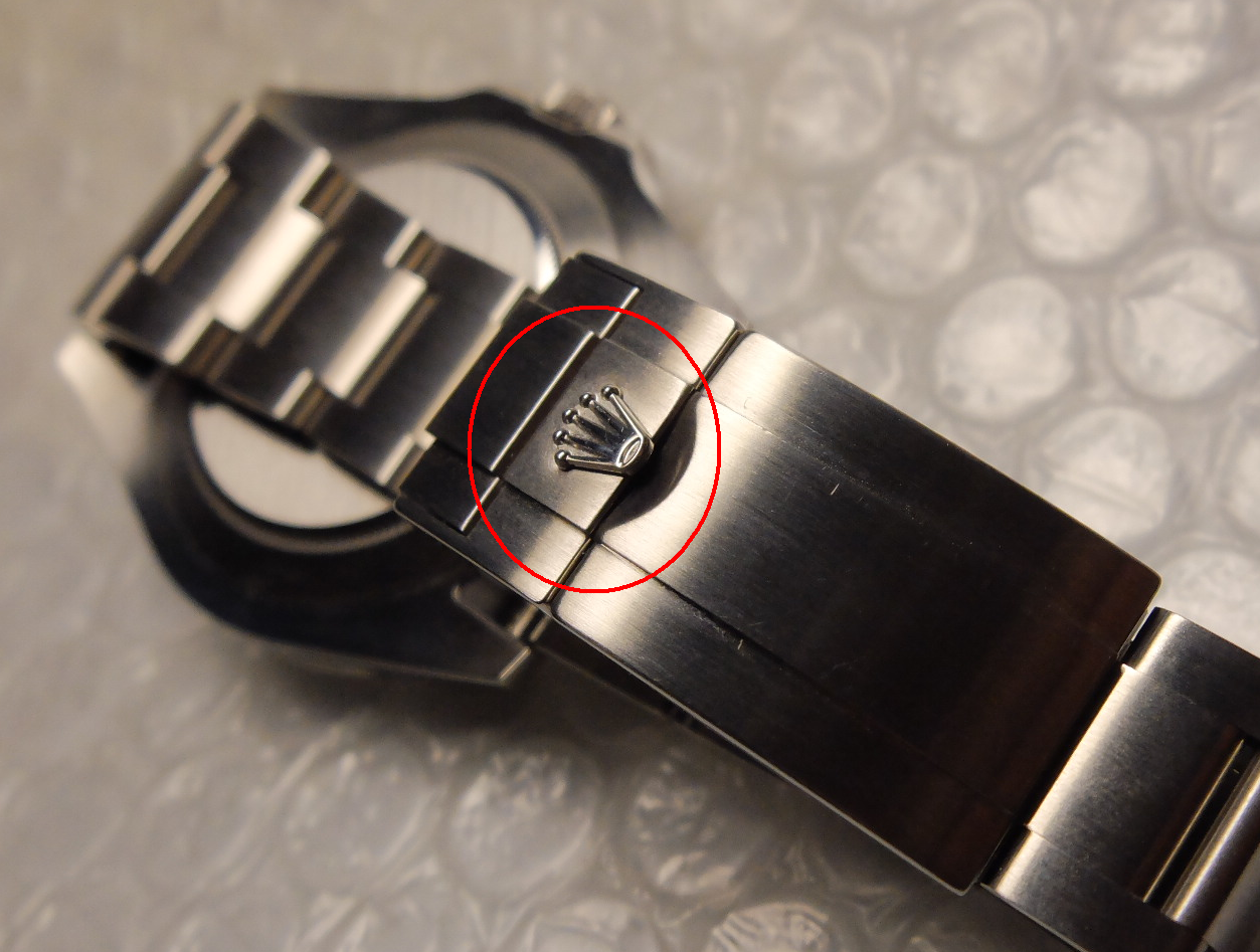 細心看錶橋上皇冠5點,呈立體半球形