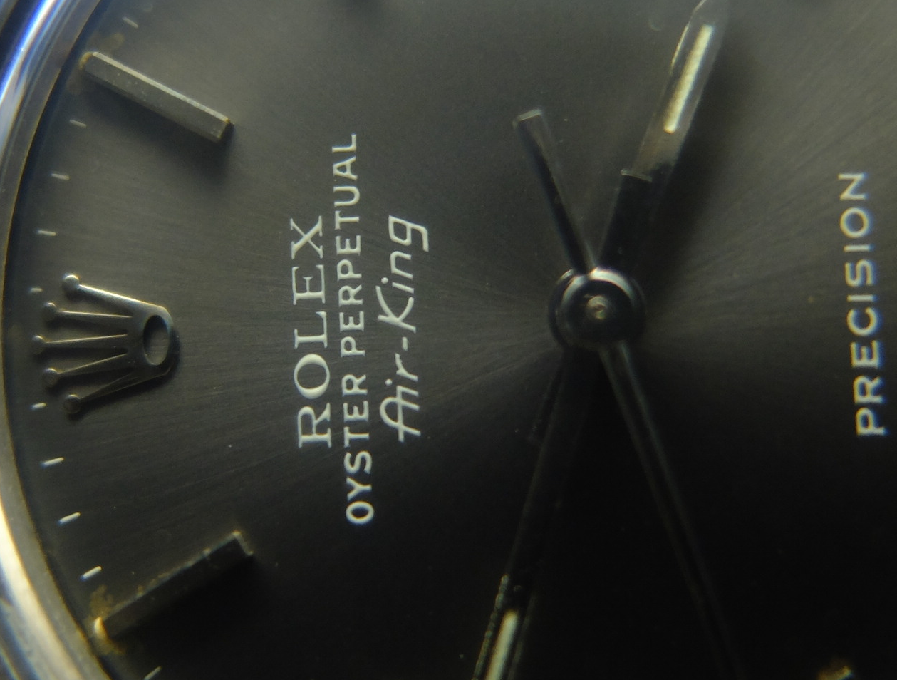 錶面放大圖,"Air King"的獨特字體,有浮凸感
