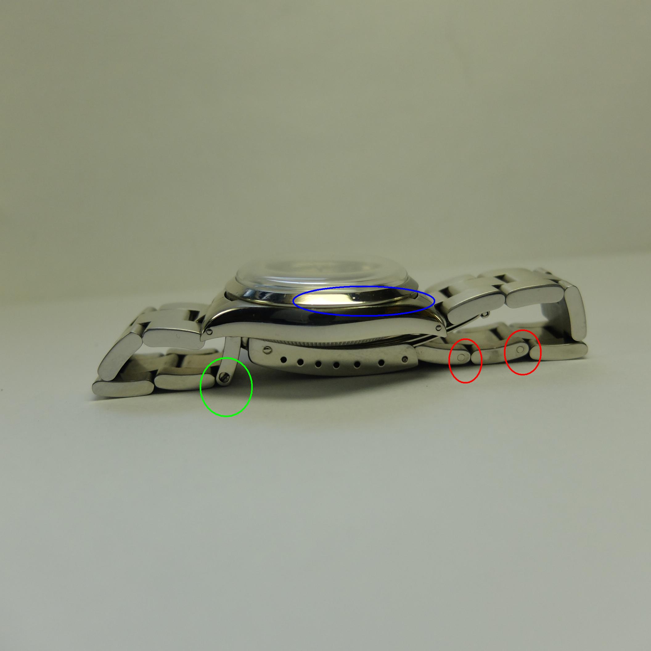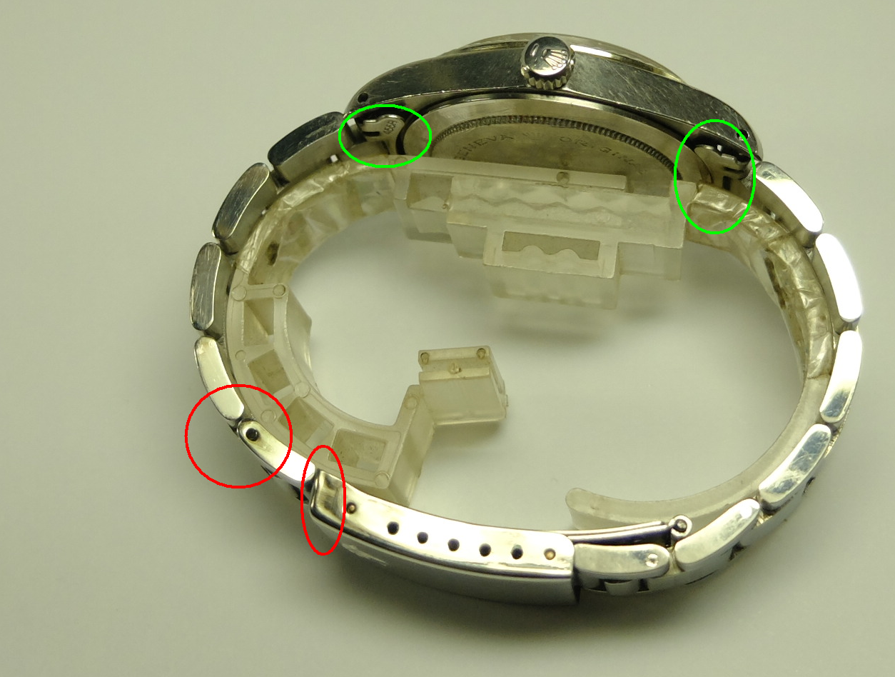 左2紅色圈,錶橋有不尋常人為凹痕,