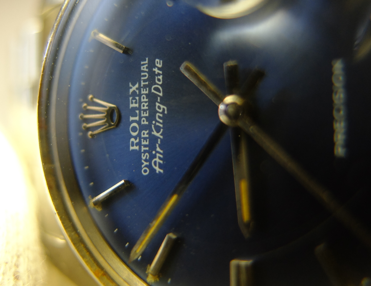 錶面放大圖,"Air King Date"的獨特字體,