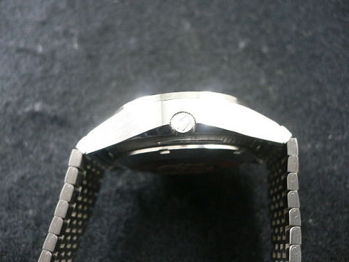 右錶殼側觀,錶冠有品牌刻記