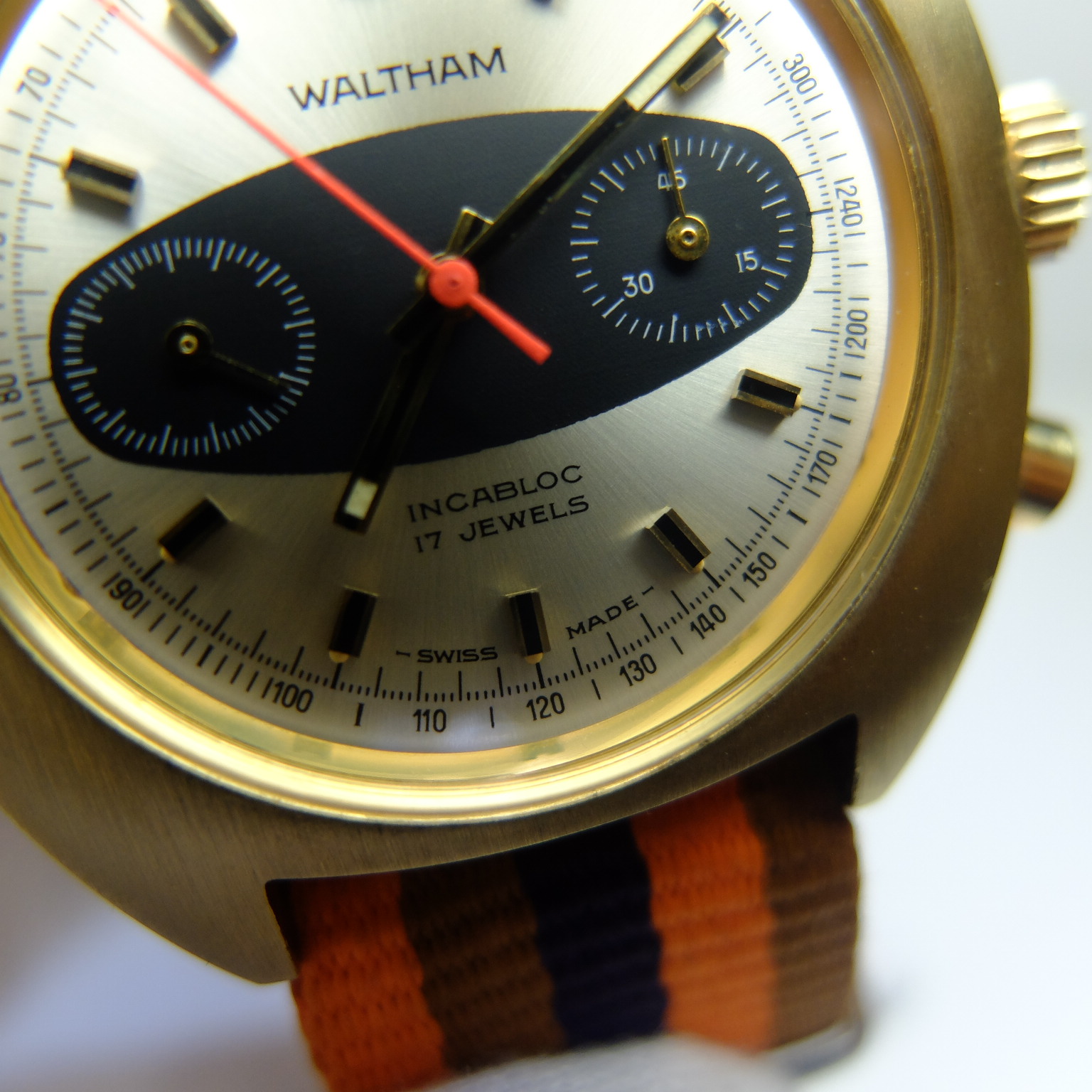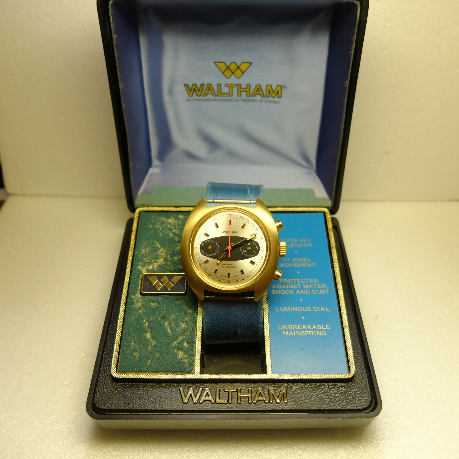 約1960年代尾至1970年代,Waltham 手動上鏈全鋼鍍金時計,