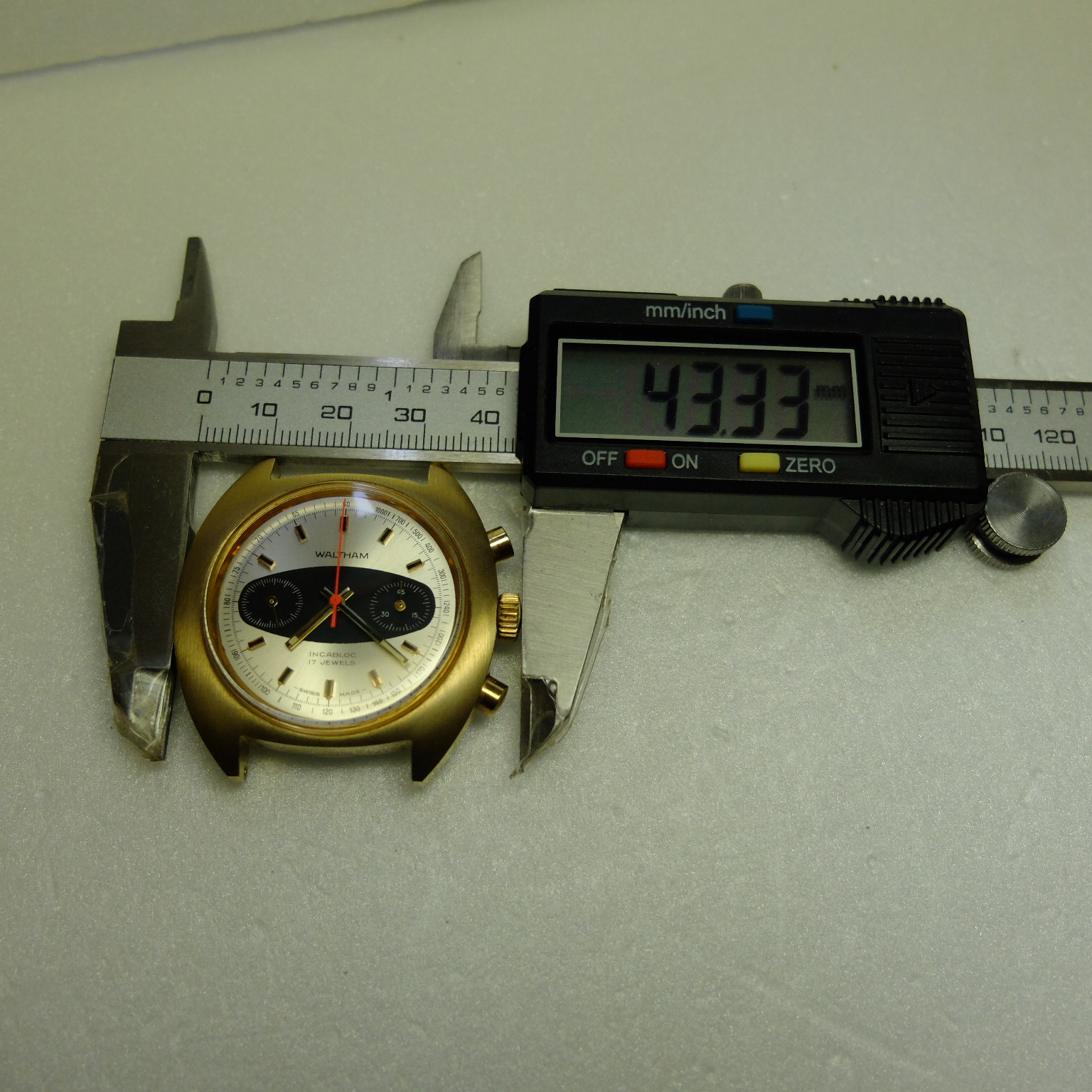 左邊小秒針盤,右邊45分鍾時計,外圍測速圈,