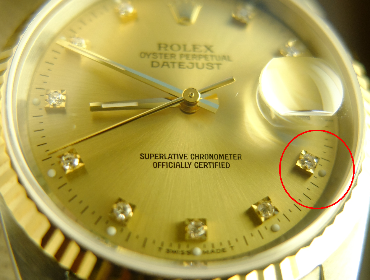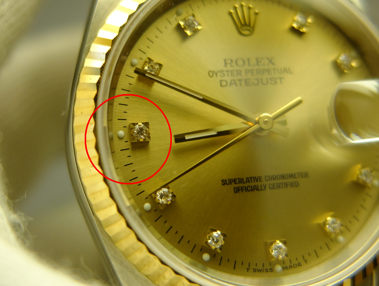 5分鐘柱記 以鑽石標示,錶殼側有錶孔