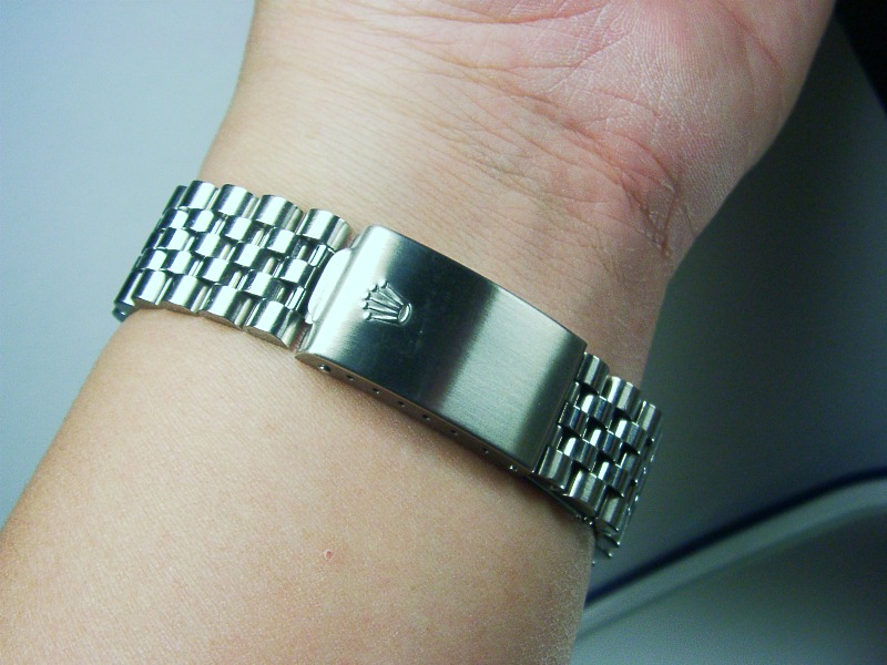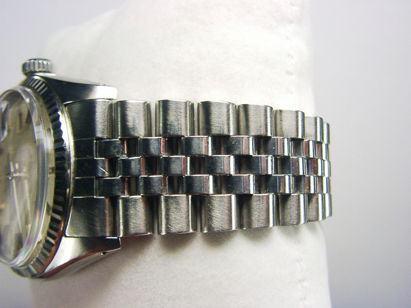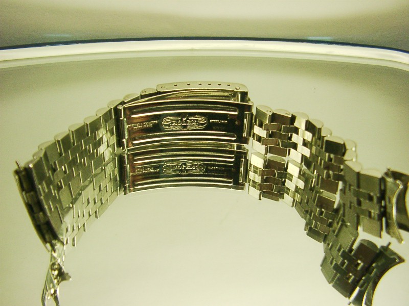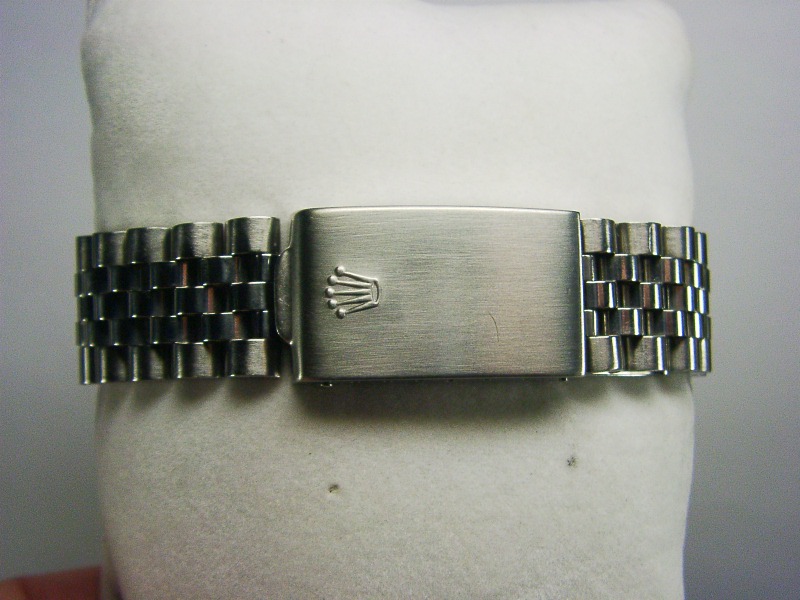 Original SOLID Rolex Jubilee 555 band 20 links (fit upto 7.5" wrist) with Rolex logo on clip and Rolex logo inside. The band is in tight condition!